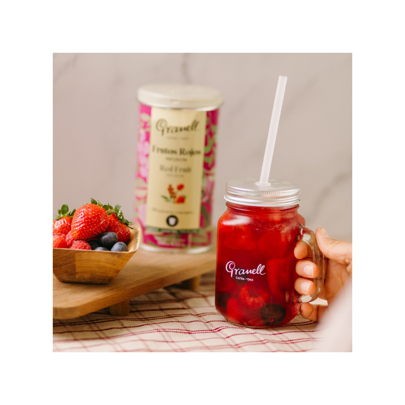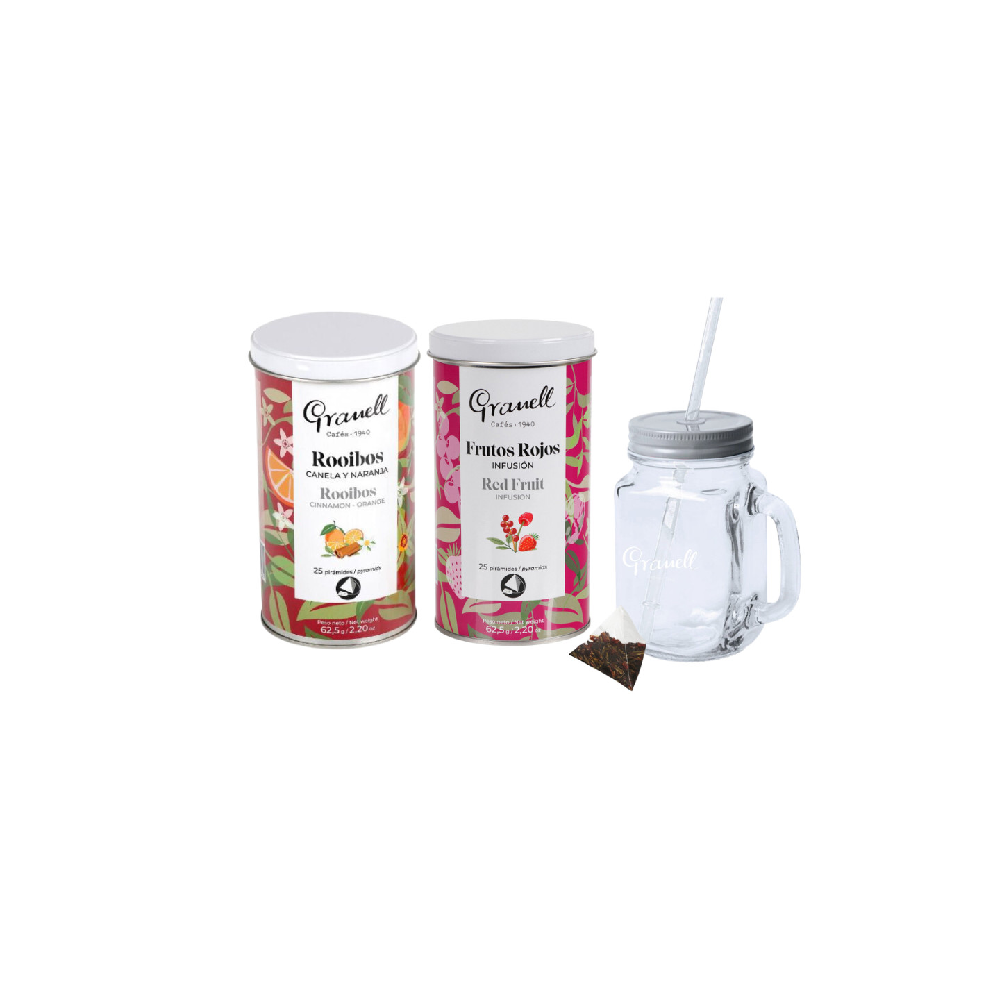 The Cold Infusion Pack is the perfect choice to refresh your summer days. This pack allows you to enjoy delicious cold infusions in a comfortable and elegant way, thanks to the included glass jar with lid and straw.